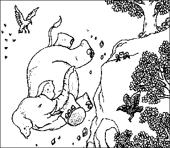 ฝ่ายนางนกไส้ที่บินหนีตายขึ้นไปจับบนกิ่งไม้ ได้พูดอาฆาตตามหลังช้างนั้นไปว่า “เจ้าช้างเกเร วันนี้เป็นวันของท่าน ปล่อยให้ท่านไปก่อน วันข้างหน้าเราจะเห็นดีกัน การใช้กำลังทำลายผู้ไม่มีกำลังไม่ดีแน่สำหรับท่าน” กล่าวจบก็บินไปขอความช่วยเหลือจากกา กาถามว่าจะให้ช่วยเหลืออะไร นางนกไส้จึงเล่ารายละเอียดให้ฟังว่า “ท่านกา ขอเพียงท่านช่วยจิกตาช้างให้บอดเท่านั้นเอง กาก็รับคำช่วยเหลือนั้น
